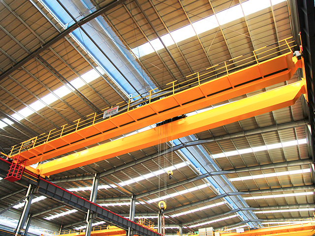 新型橋式起重機是我公司在引進和消化國外先進技術的基礎上,以模塊化設計理論為指導,以現代計算機技術為手段,引入優化設計及可靠性設計方法,采用進口配置、新材料、新工藝完成的具有輕量化、通用化、節能環保、高技術含量的新型起重機。本起重機的設計、制造及檢驗均執行國家有關標準,等效采用部分FEM、DIN、IEC等國外標準,與原有通用QD型橋吊產品相比,自重減輕約15~30%,輪壓減小約10~35%,可以降低